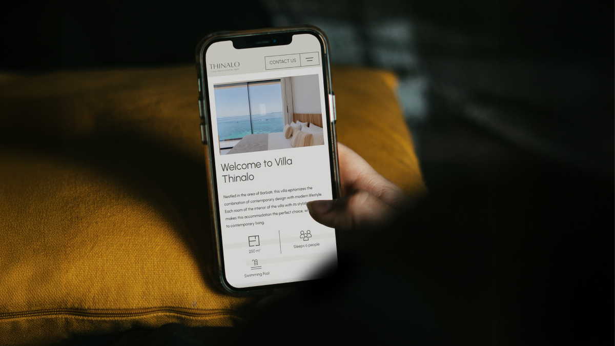 Η πρώτη εντύπωση που δημιουργείται στους επισκέπτες όταν αναζητούν βίλες για ενοικίαση προέρχεται από το διαδίκτυο. Η ιστοσελίδα της βίλας σας λειτουργεί σαν “ψηφιακή βιτρίνα” είναι δηλαδή το μέρος που οι πιθανοί πελάτες θα μάθουν για την βίλα σας. Ένα όμορφο, εύκολο στην πλοήγηση και γρήγορο website μπορεί να δημιουργήσει μια θετική εμπειρία στον χρήστη, αυξάνοντας τις πιθανότητες να επιλέξουν την βίλα σας για την διαμονή τους.